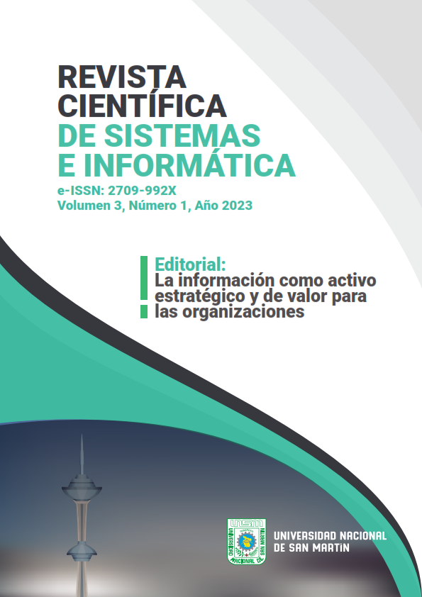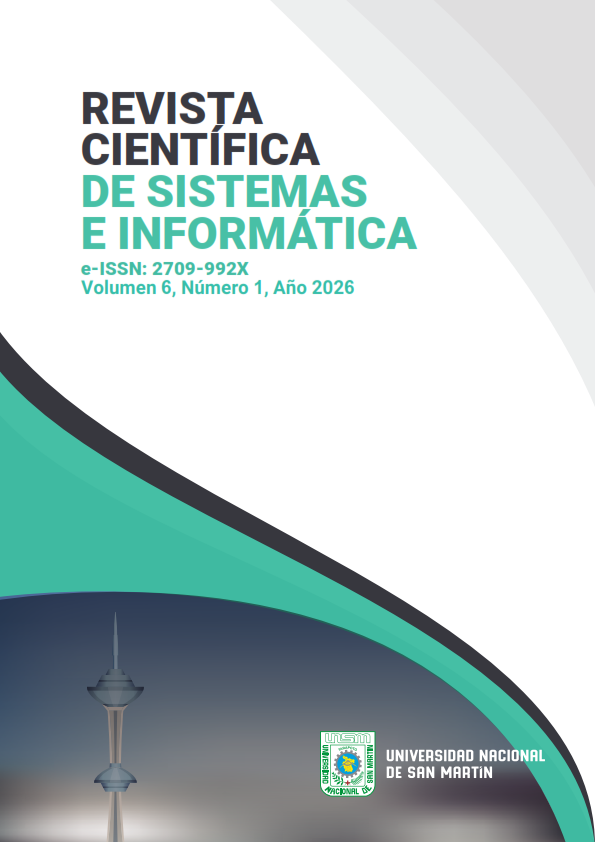RCSI is a publication edited by the Universidad Nacional de San Martín, Jirón Maynas N° 177, Tarapoto, San Martín, Peru, through the Editorial Fund in collaboration with the Faculty of Systems and Computer Engineering. Tel. (042) 480102, Web: https://revistas.unsm.edu.pe/index.php/rcsi, Contact: fondoeditorial@unsm.edu.pe. With electronic ISSN 2709-992X granted by the ISSN International Center.